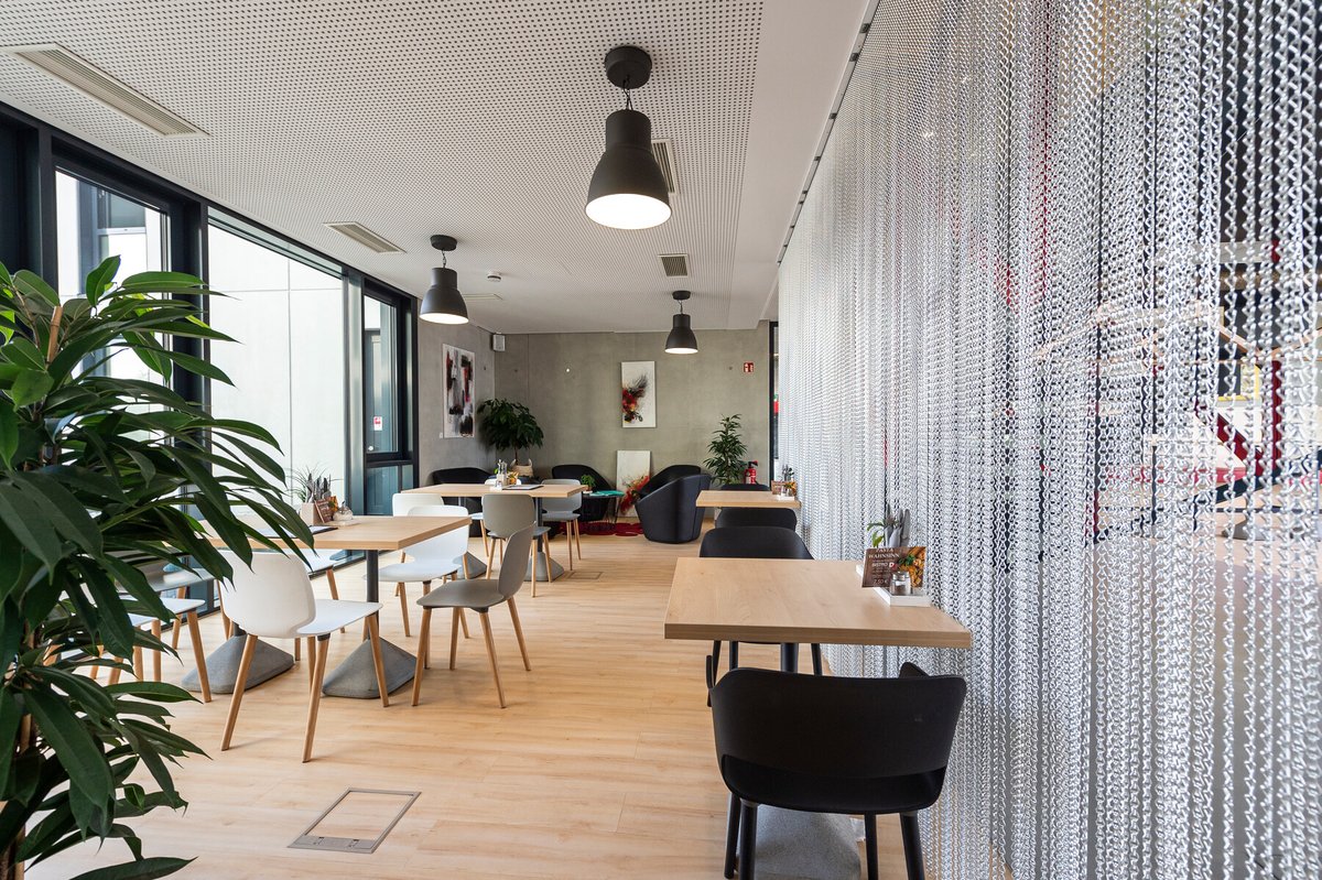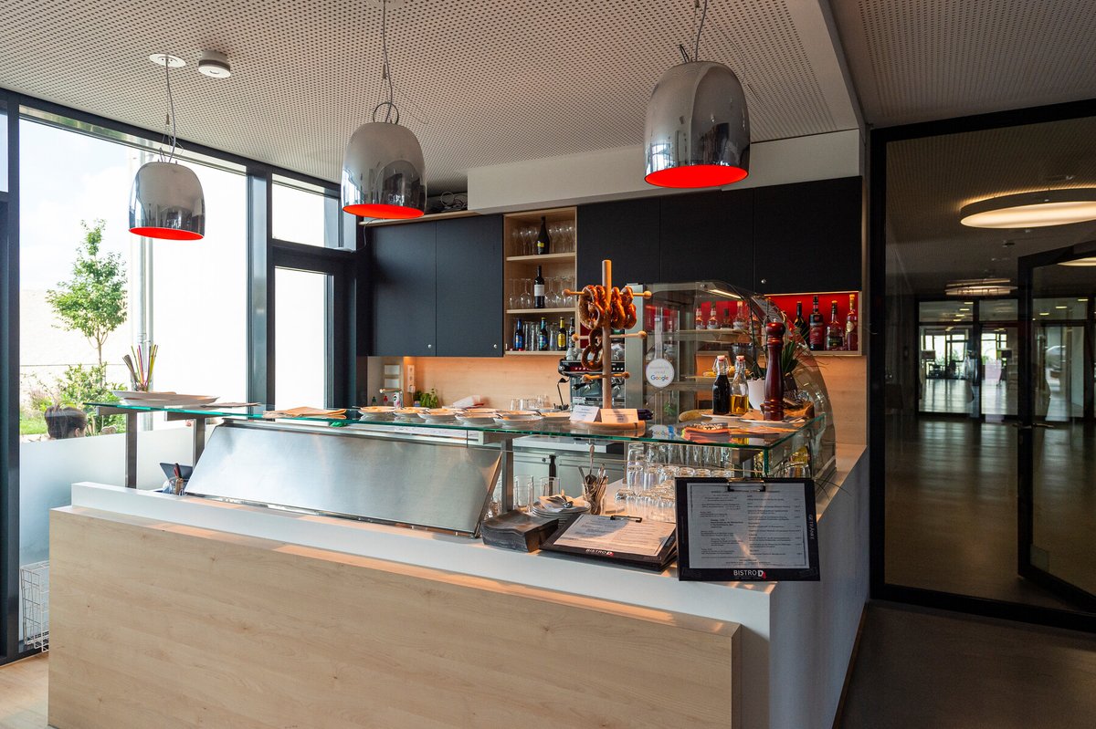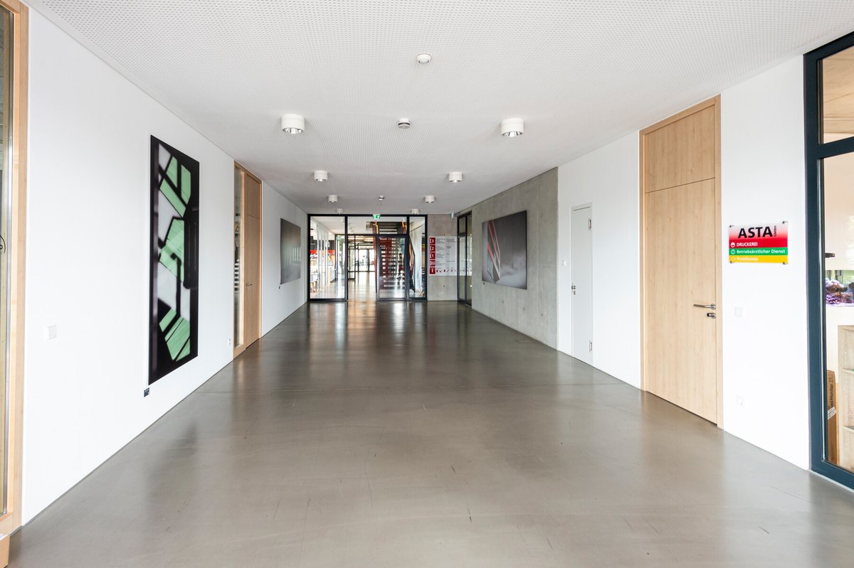 Ein markantes Bürogebäude mit Wiedererkennungswert. [DAS working & living HOUSE] steht inmitten des Gewerbegebiets Süd in Gilching. Zentral an der Autobahn A96 gelegen, sticht es mit seiner Architektur und dem roten Farbakzent sofort ins Auge. Doch nicht nur von außen ist das Gebäude ein Blickfang, auch im Innenbereich zieht sich das moderne Design durch die gesamten Büro- und Nebenflächen des Hauses. Ein stilvolles Bistro als kulinarisches Highlight und Treffpunkt der Arbeitnehmer im gesamten Gewerbegebiet. Die exklusiven Dachterrassen ermöglichen einen ungewöhnlichen, aber interessanten Blick auf die benachbarte Autobahn und die umliegenden Acker- und Waldflächen.